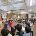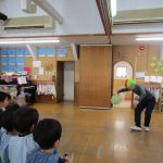 あっという間に年長さんが退治しくれて一安心。ようやく豆まきが終わりました。