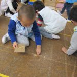 その後は、段ボールほうきで豆の掃除です。掃除も楽しみながら行うと子どもたちは一生懸命に取り組んでくれますね。