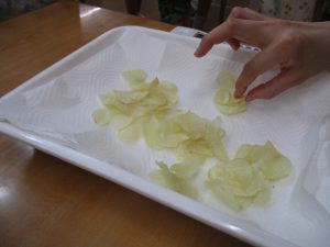 昨日収穫した“じゃがいも”で、今日はポテトチップを作りました。