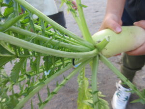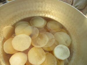 薄く切って、しみ大根に・・・。子どもたちは「おかわりー!」と3枚~4枚?!食べることができました。