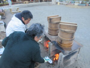 子どもたちが登園するときにはすでに蒸籠もセット完了済みでした!