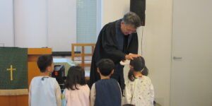 今日は、礼拝堂において、子ども祝福式が行われました。 園長先 …
